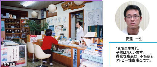 安達一生(あだちいっせい) 1976年12月19日生まれ 漢方療法推進会会員 1999年北陸大学薬学部卒業 漢方療法推進会 中部支部 ようしん会会員 2000年安達漢方薬局勤務 不妊漢方研究会会員 日本フラボノイド会員 日本中医薬研究会会員