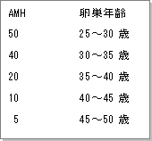 女性の卵巣の中には生まれつきたくさんの原始卵胞があります。原始卵胞は月経が始まる時期になって活性化し、発育卵胞→前胞状卵胞→胞状卵胞→成熟卵胞と成熟し、約190日かかって排卵を迎えます。 卵胞は原始卵胞が活性化し始めるとAMHを分泌するといわれており、卵巣の機能が悪くなるとFSHは上昇していき、これに対しAMHは卵巣の機能が悪くなると減少します。 成人女性の血清AMH値は年齢上昇とともに減少し、AMHの主たる産生源である前胞状卵胞の消失を反映しています。 AMH低濃度では、採卵数・受精卵数が有意に低下することで、妊娠率も低下することから、このAMHの測定は不妊女性の卵巣予備能を知る良い指標になると考えられていま
