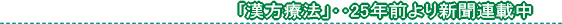 昭和56年から漢方薬の啓蒙のため、地元紙中日ホームサービスに 毎月「漢方療法」と題して連載しています。 過去に掲載された内容の一部を紹介します。