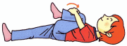 B軽くひざを曲げ、上体を起こす。苦しければ背中の下に座布団などを置く。