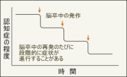 脳血管性認知症は、発作の再発によって認知症の症状が 段階的に悪くなることがあります。