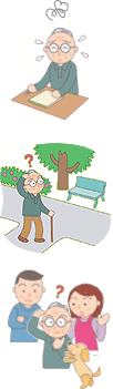 ■中心となる症状には「記憶障害」と「判断力の低下」と「見当障害」があり、必ずみられる症状であり、中核症状と呼ばれています。 |