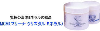 MCM(マリーナ クリスタル ミネラル)は人間の血液(体液)と海水成分がほとんど同じバランスであることから生まれました。 茨城県大洗沖の深さ100メートルの海水成分を南極石(南極で発見された太古の海水の結晶)と同じ結晶に分離させ精製した100%天然ミネラルの微粉体です。