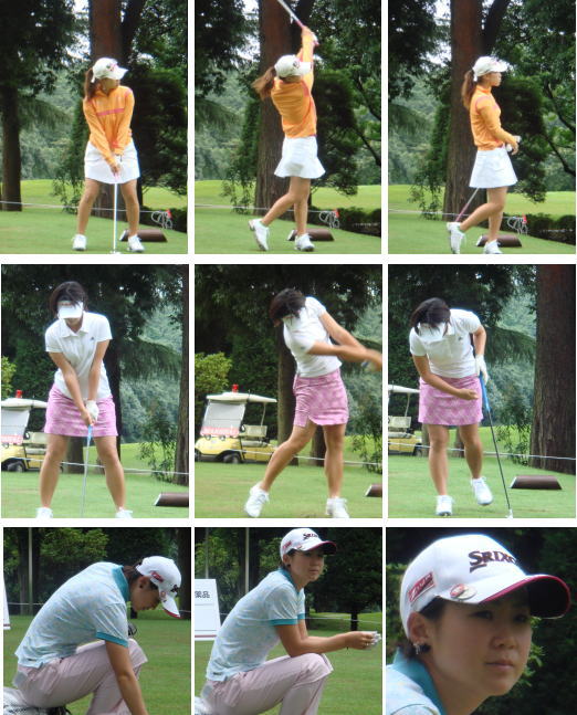 上田桃子、古閑美保、諸見里しのぶ、横峯さくら、全美貞、不動裕理、服部道子などのトッププロなどとの前夜祭やプロアマ戦でのパーティーも楽しかったです。下のスナップはプロアマ戦の上田桃子プロ、諸見里しのぶプロ、古閑美保プロです。 |