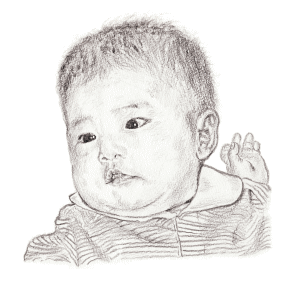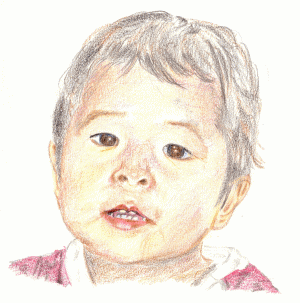 私の最初の孫です 安達一生の長男「亮喜」です。 亮喜くん2歳の時の似顔絵です。 平成13年7月30日うまれ、現在は小学2年生です。