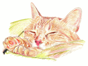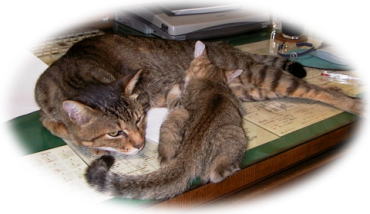 2005年9月のまだ暑い日 薬局の南の駐車場でしっかり歩けないほど弱って泣いているところを家内が気がつきました。 さっそく 私が連れてきてからだを洗ってやり、子猫用のミルクを与えました。