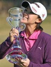 国内女子ゴルフの最終戦「LPGAツアー選手権リコーカップ」で、独走していた不動裕理を大逆転し、メジャー初制覇