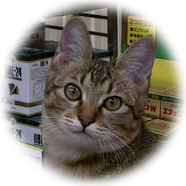 1890年10月 開明のカネスエに「誰かもらってください」というメモとともに箱に入れられていました。 その翌日家内が連れてきた子です。 かわいかったのですが、とても臭くて、すぐに全身シャンプーしました。 今年で19歳になります。 2年前に乳がんになり、徐々に痩せて体力も低下していますが、 まだ、がんばっています。 夜は、毎晩私と一緒に寝ています。