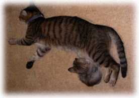 シンちゃんが自分の子のようにかわいがり母親代わりをしてくれました。 もらい主を探しましたが あまり「かわいい子」なので、この子も うちの子になってしまいました。